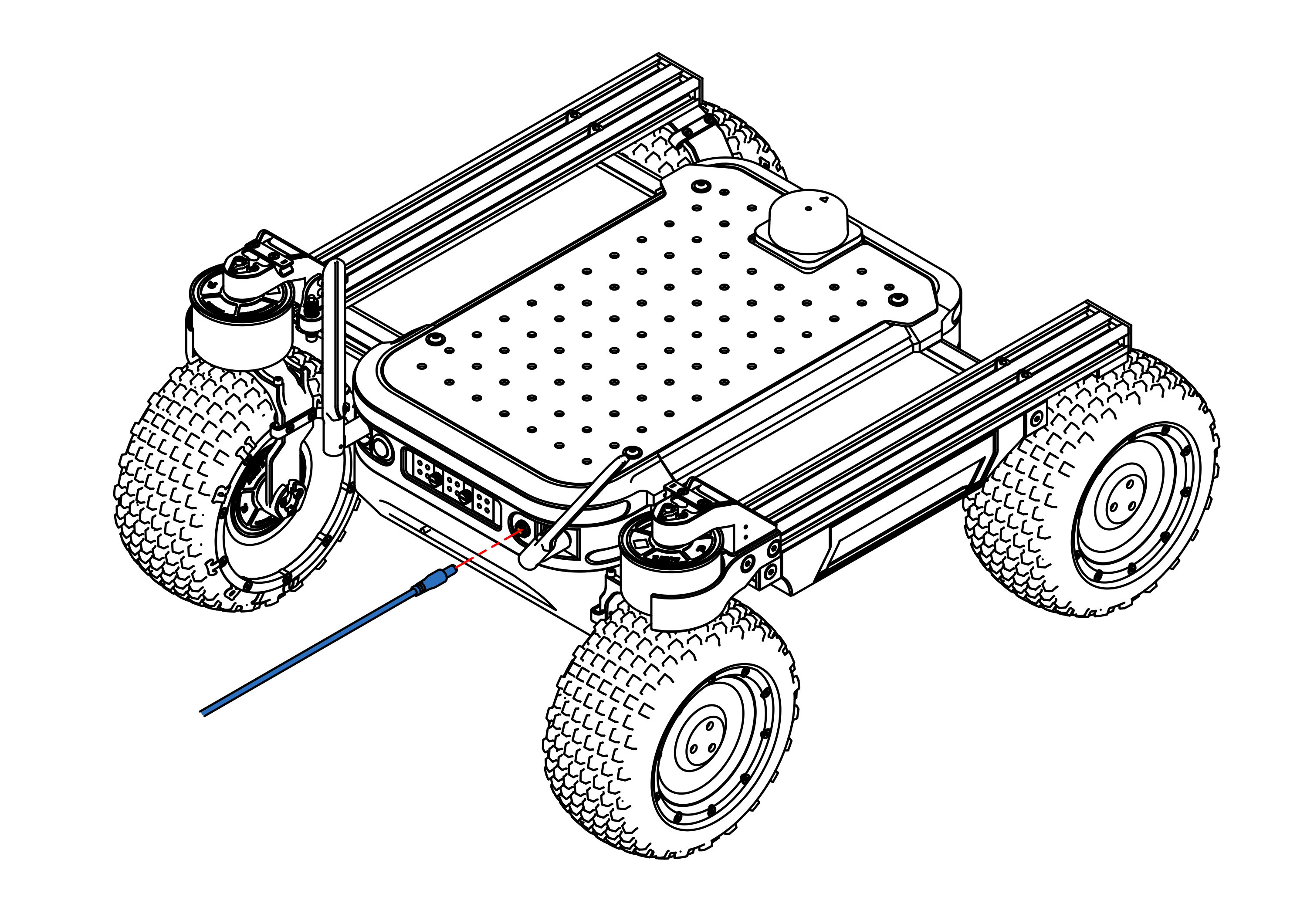 As an alternative, the batteries can be charged via the rover, by leaving them inside the battery ports and connecting the charger to the rover's power input located at the back.