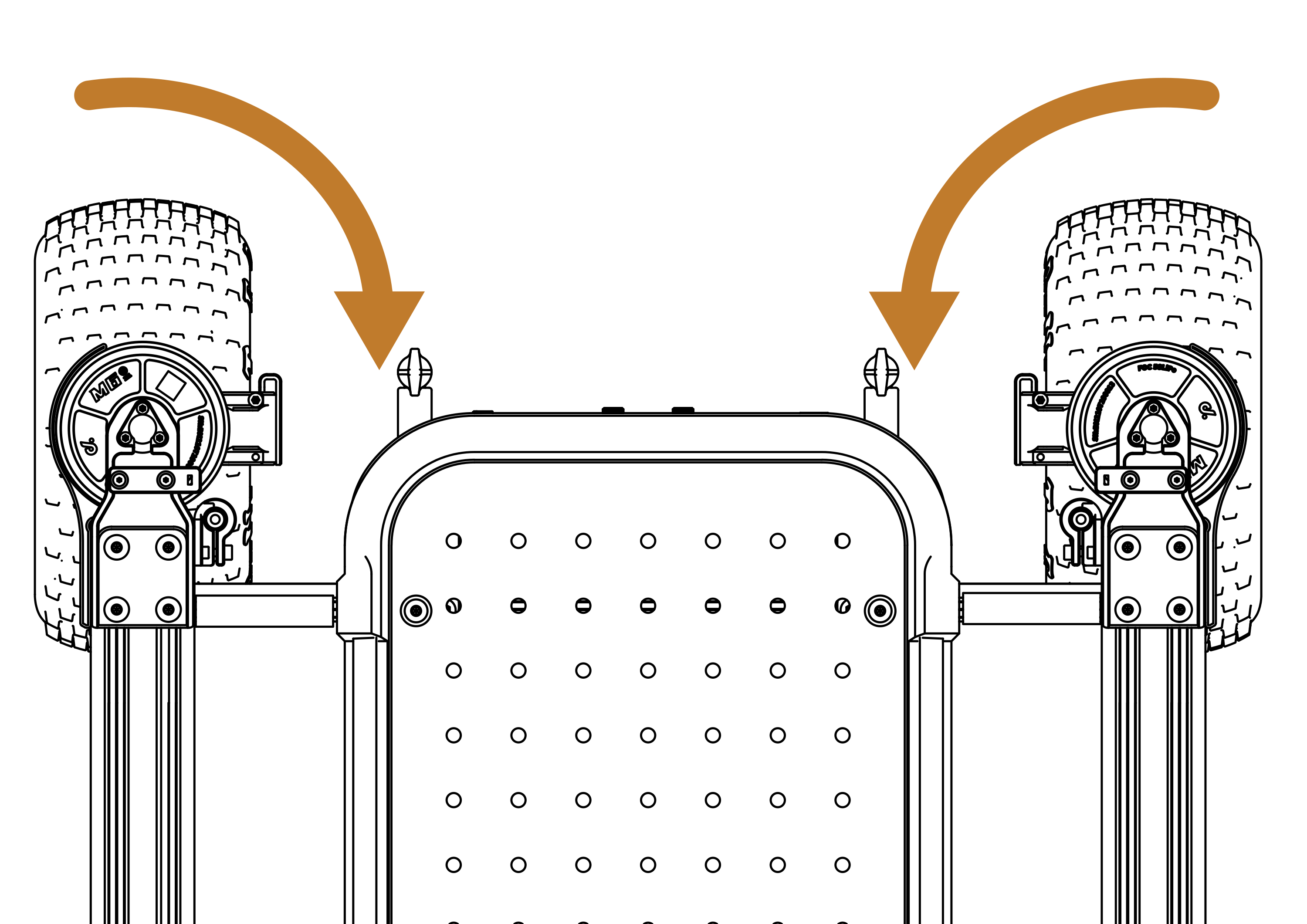 Wheels will begin to rotate inwards to locate the induction sensor, then bump into the frame to set zero position. This 2-step process ensures that the wheels are calibrated without obstruction.
